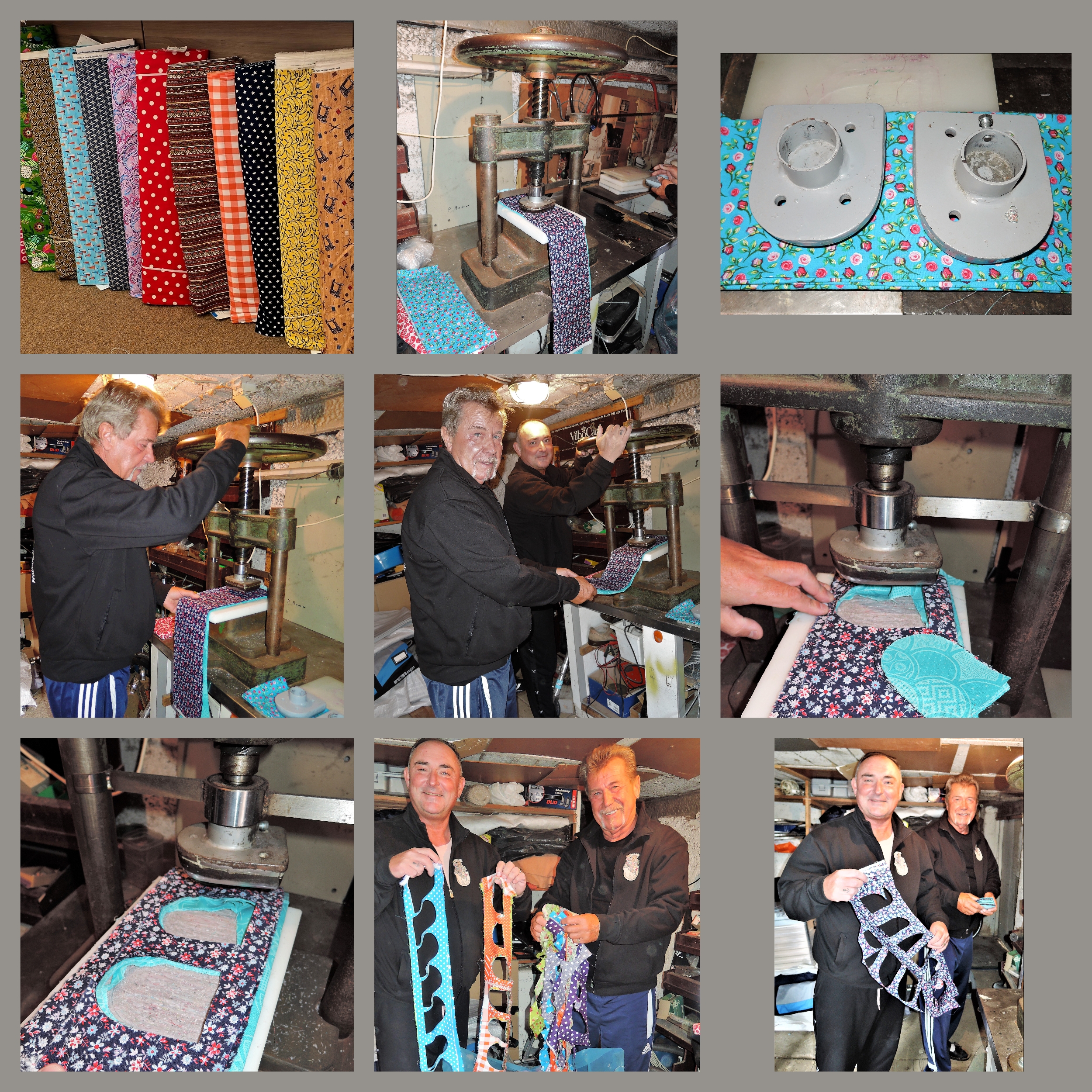 Nachdem der Stoff beschafft wurde, muss dieser „gestanzt“ werden. Für unsere „Fleckle-Stanze gibt es verschiedene „Stanz-Messer“ – „große und kleine“ – für Erwachsenen-Fleckle bzw. für Kinder-Fleckle.