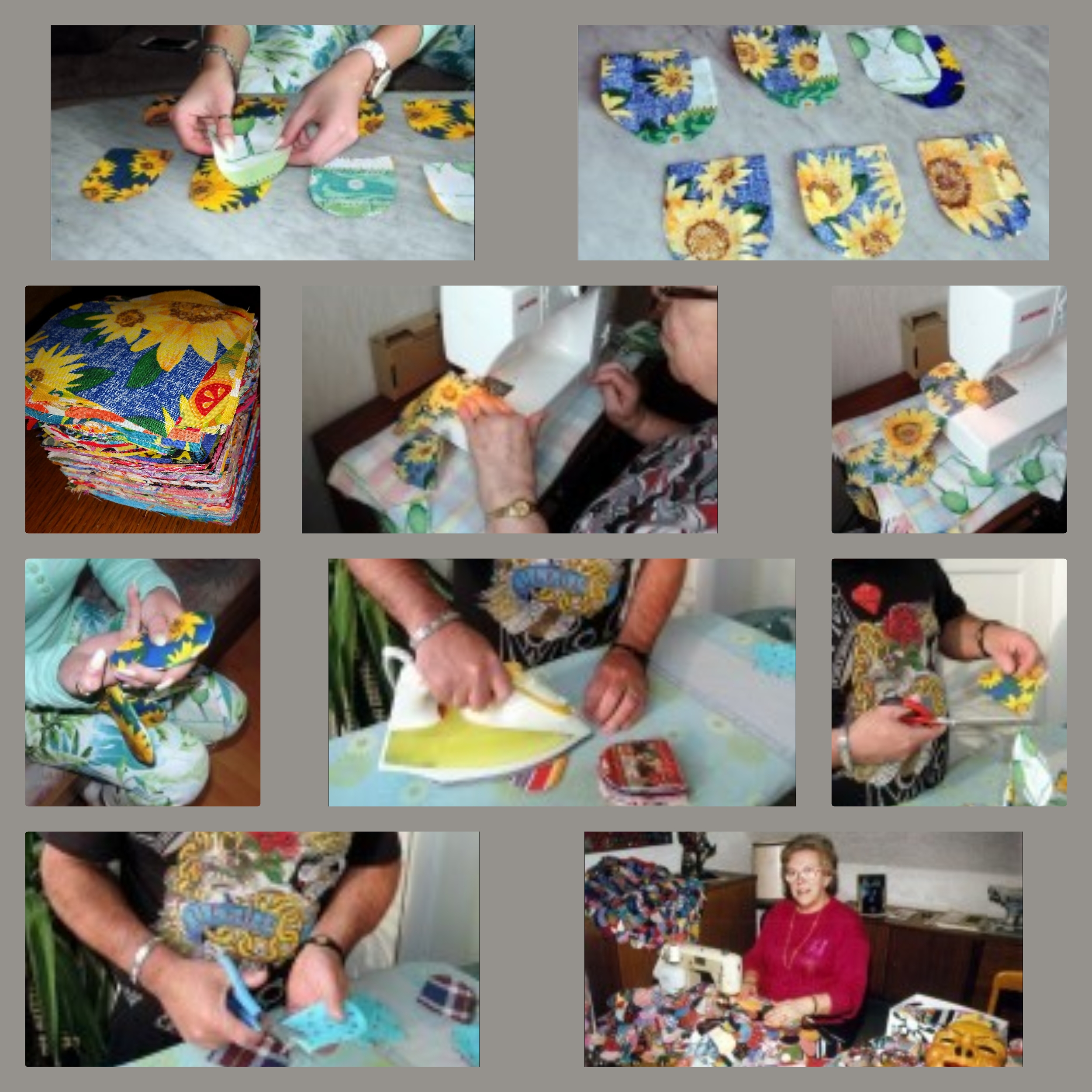 Nachdem die Fleckle zusammengenäht wurden, werden diese umgedreht,